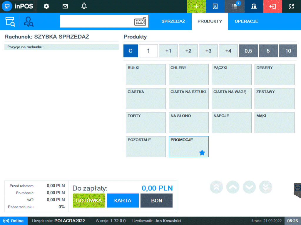 Z uwagi na częstą potrzebę obsługi kilku klientów jednocześnie system inPOS wyposażony jest w tryb pracy na wielu rachunkach. Możesz wybrać jeden z dwóch typów rachunków zaimplementowanych z interfejsie inPOS – rachunki stałe i rachunki otwarte. Dodatkowo, dla otwartych rachunków istnieje możliwość ich łączenia oraz dzielenia na życzenie klienta, co dodaje elastyczności całemu procesowi sprzedaży.